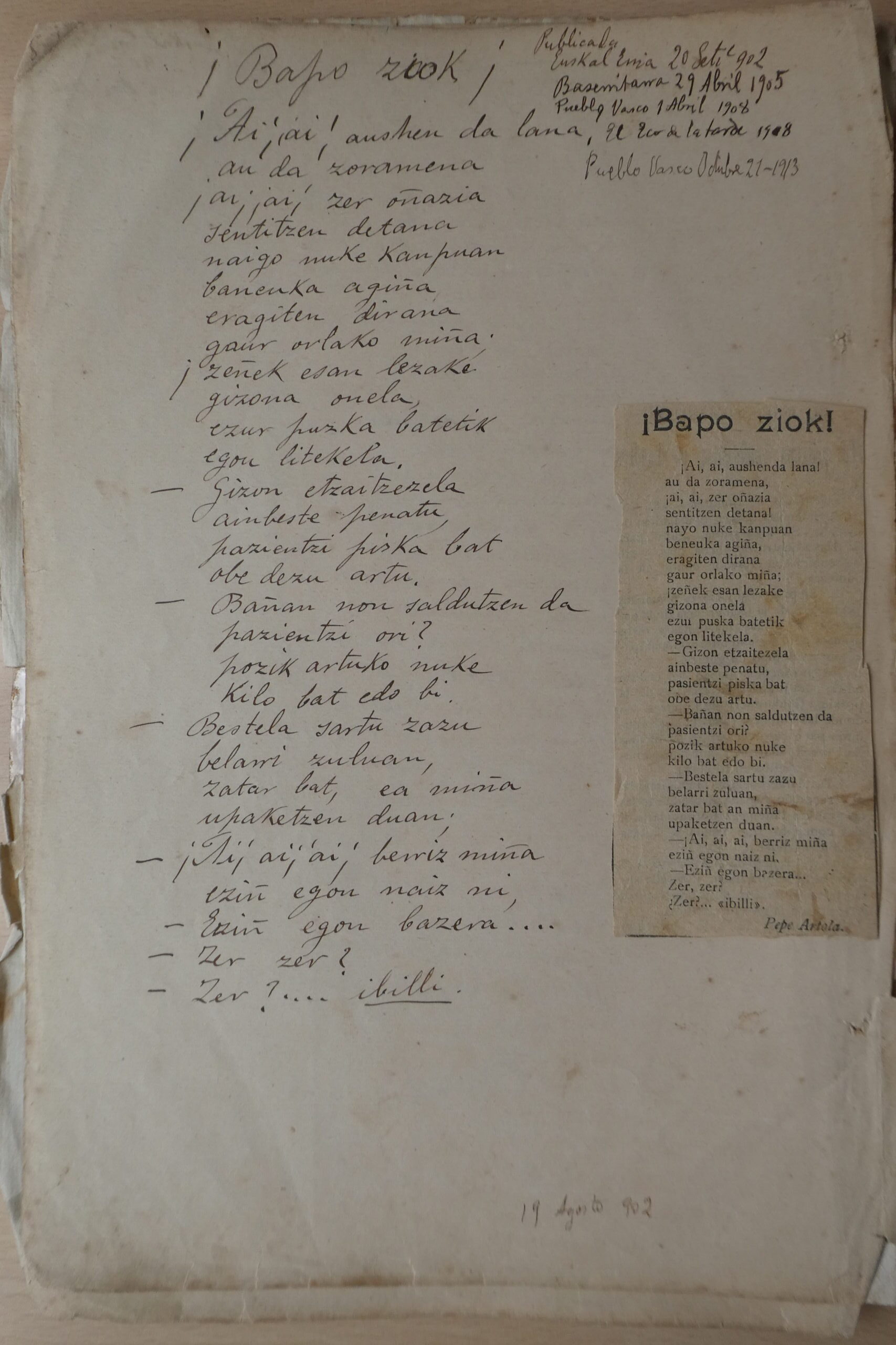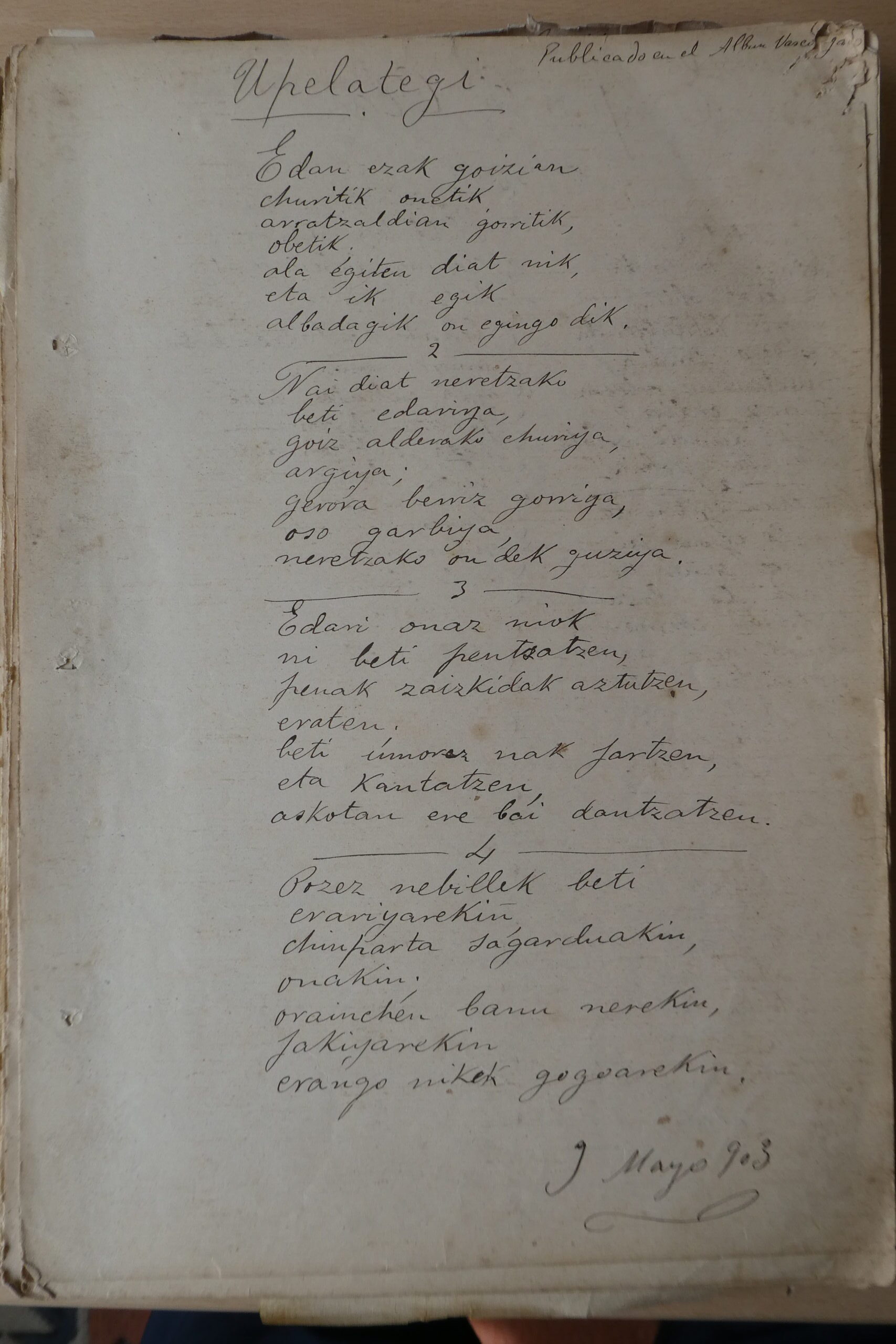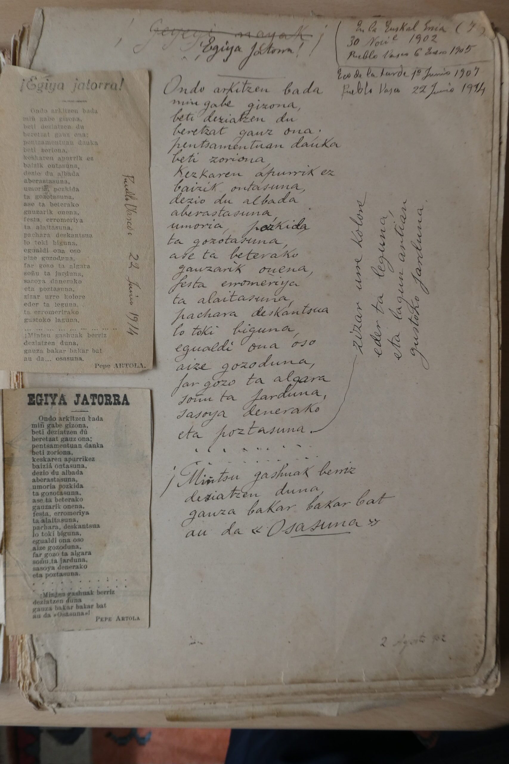 Hemen argitaratuko ditugu Pepe Artolaren bigarren liburuaren digitalizatutako orriak. Irudiak ordenean agertuko dira, eta aurrera eta atzera joateko geziak izango dituzu. Gainera, orri-indize edo orri-zenbaki selektore baten bidez zuzenean joan ahal izango zara nahi duzun atalera. Oraingoz atal hau prestatzen ari gara; laster hasiko gara irudiak igotzen.
